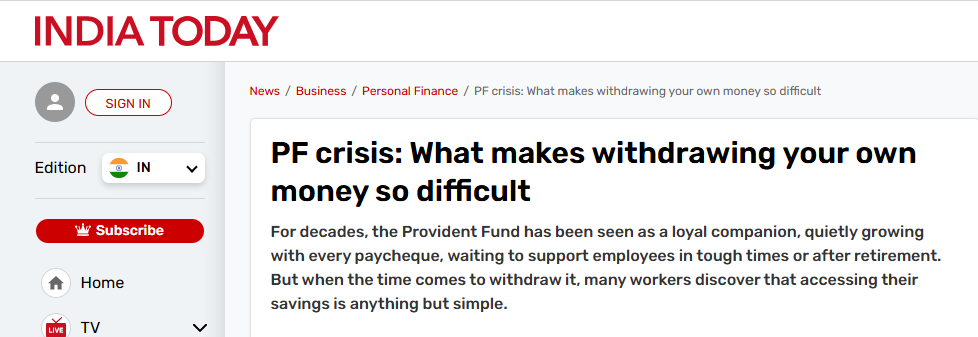 Pankaj Aneja, ASA & Associates LLP, notes in India Today that the biggest hurdles in accessing PF savings arise from incomplete KYC and mismatched Aadhaar, PAN, or bank details, underscoring how process inefficiencies rather than funds remain the real barrier for employees.